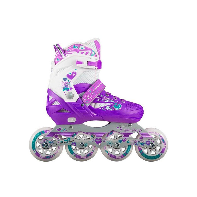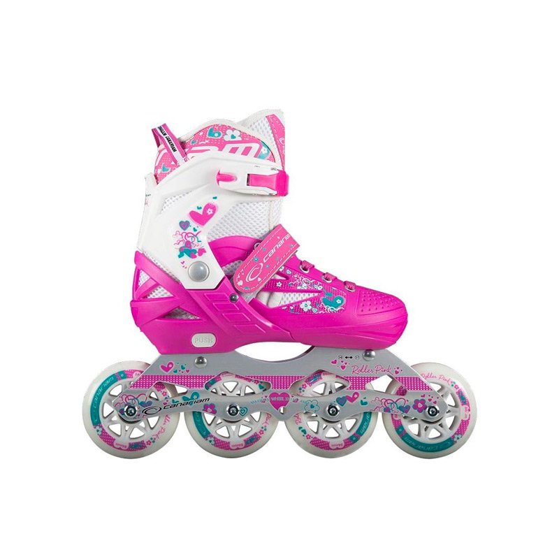 Patines para Niñas Canariam Roller Pink; ajustables de uso recreativo, ideales para iniciación y ciclovía; elaborados con una base de PVC, tela enmallada y refuerzos en material sintético, acolchado en espuma de alta densidad para mayor comodidad